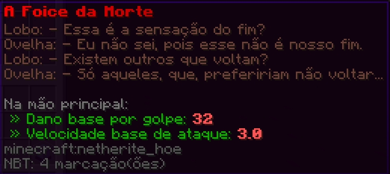 ➤ Será possível utilizar armaduras de couro tingido, ouro, malha, ferro e diamante, mas com os status de proteção de netherite! Bem como espadas de madeira com o dano base e velocidade de ataque de qualquer outro minério...