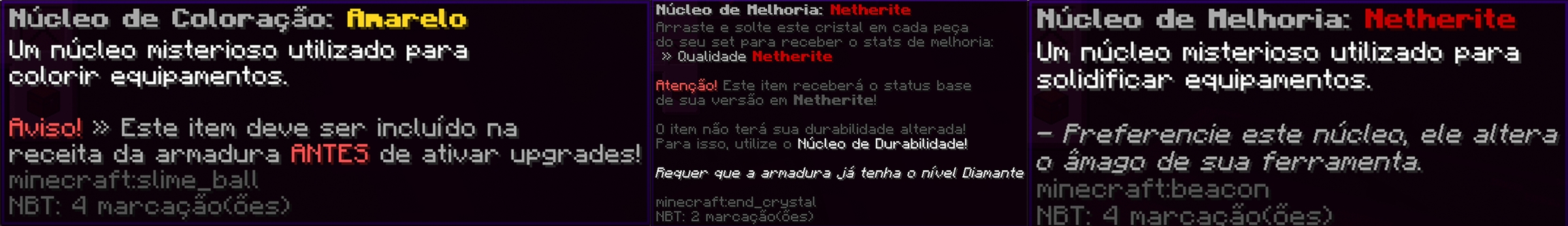 Lembrando que não será possível a criação de núcleos de melhoria com qualidade igual ou inferior ao NETHERITE, pois não faz sentido já que os núcleos não serão mais upgradados e as armaduras já são qualidade netherite